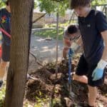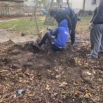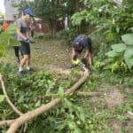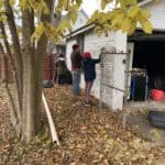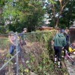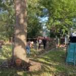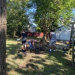 On the first of many Saturday morning yard days, the Bellarmine Youth Group came and helped us take out the chain link fence along the left side of the shelter.